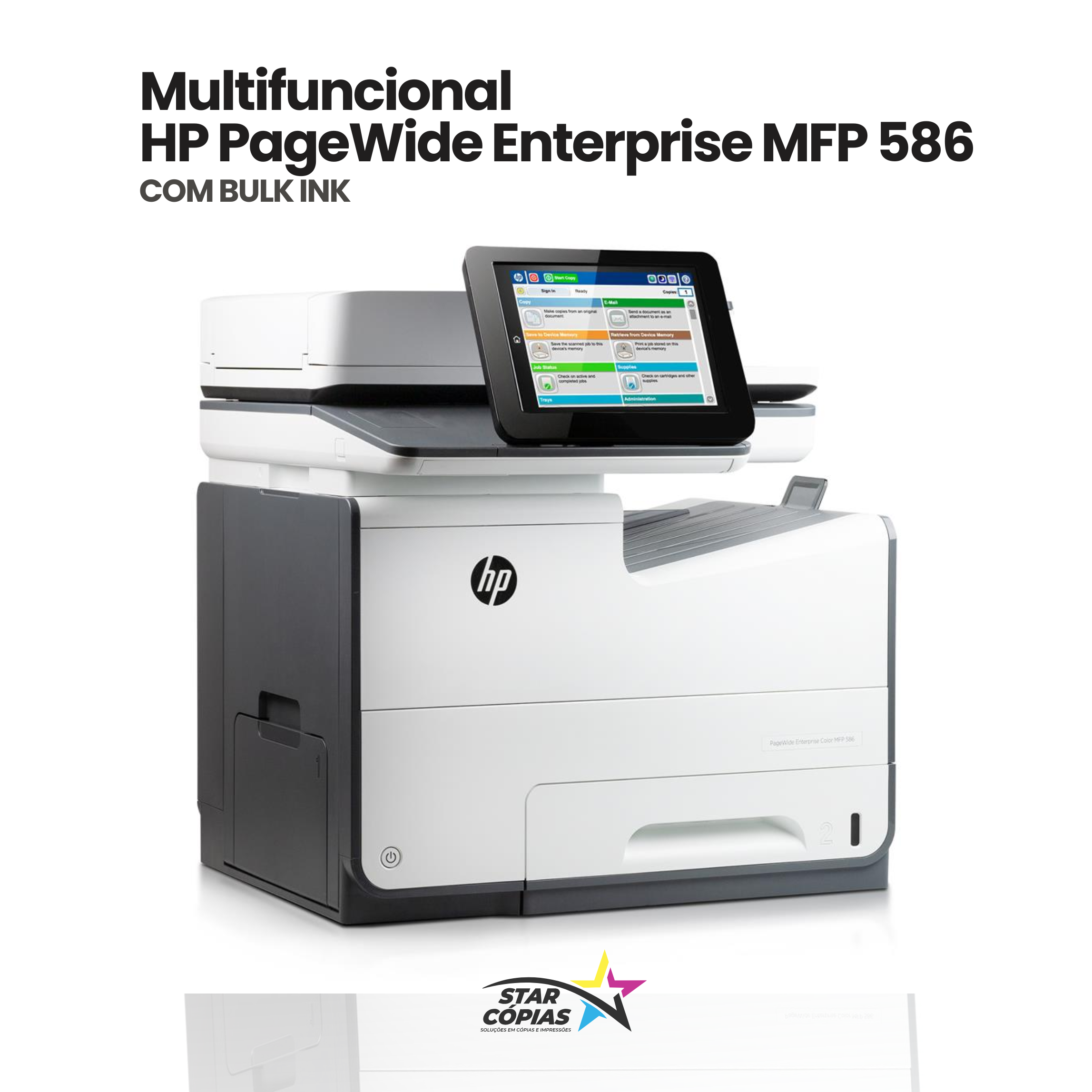 • HP PageWide Enterprise Color MFP 586 com sistema Bulk-Ink instalado