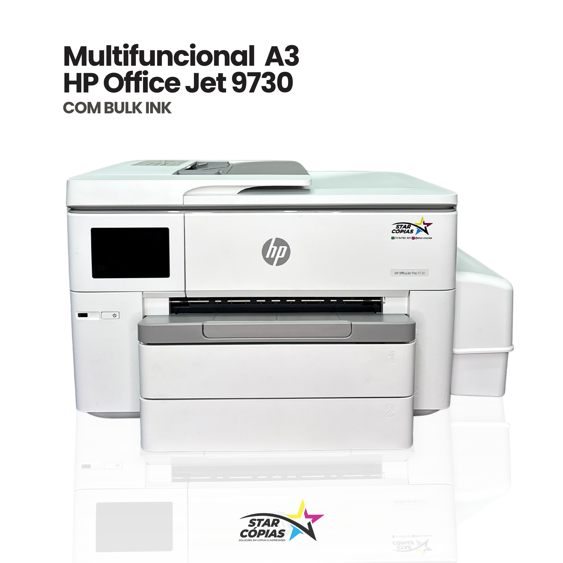 Multifuncional HP OfficeJet Pro 9730 com Bulk-Ink – Grande Formato, Economia e Produtividade Profissional