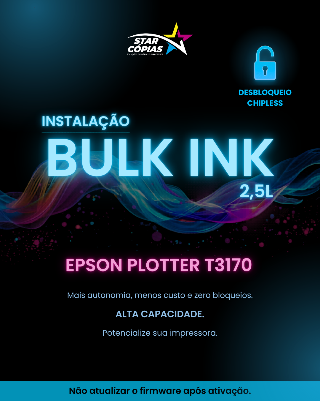 Utilizamos tintas de alta qualidade da nossa marca Star Cópias, garantindo desempenho e confiabilidade no uso diário.