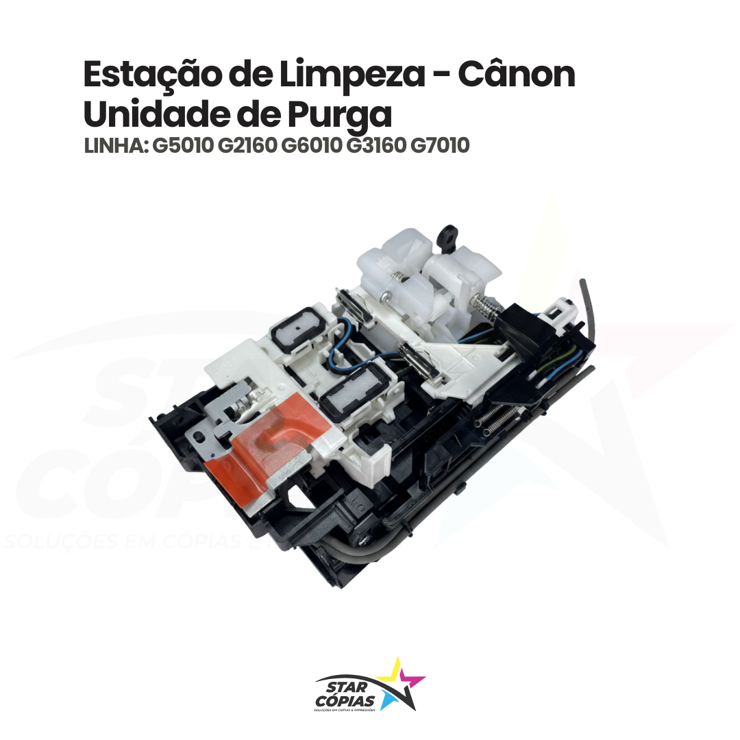 A Estação de Limpeza, também chamada Estação de Purga, é uma peça original Canon, projetada para manter as cabeças de impressão limpas e garantir o fluxo correto de tinta durante a operação da impressora. Desenvolvida conforme o padrão de fábrica, assegura eficiência na manutenção, evita entupimentos, borrões e prolonga a vida útil do equipamento, garantindo impressões de alta qualidade.