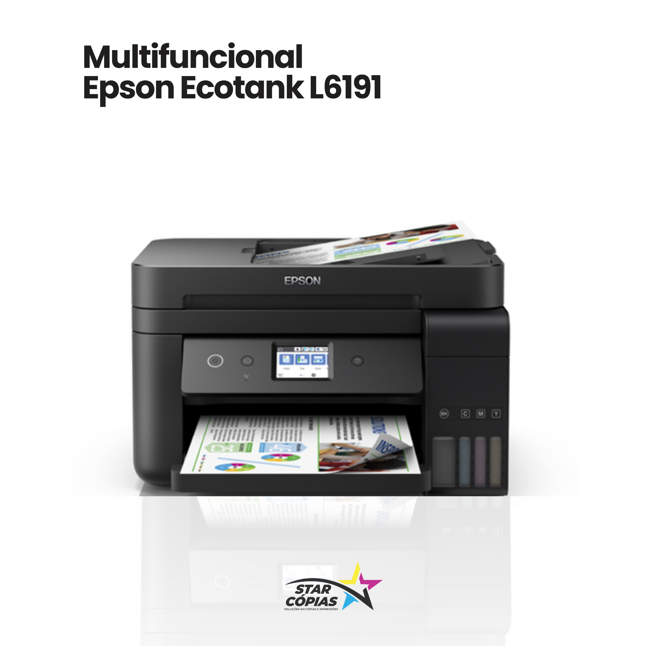 A Epson EcoTank L6191 é uma multifuncional A4 com sistema de tanque de tinta original, ideal para quem busca baixo custo de impressão, praticidade e alta produtividade. Este equipamento é entregue revisado pela Star Cópias, garantindo funcionamento confiável para rotinas diárias.